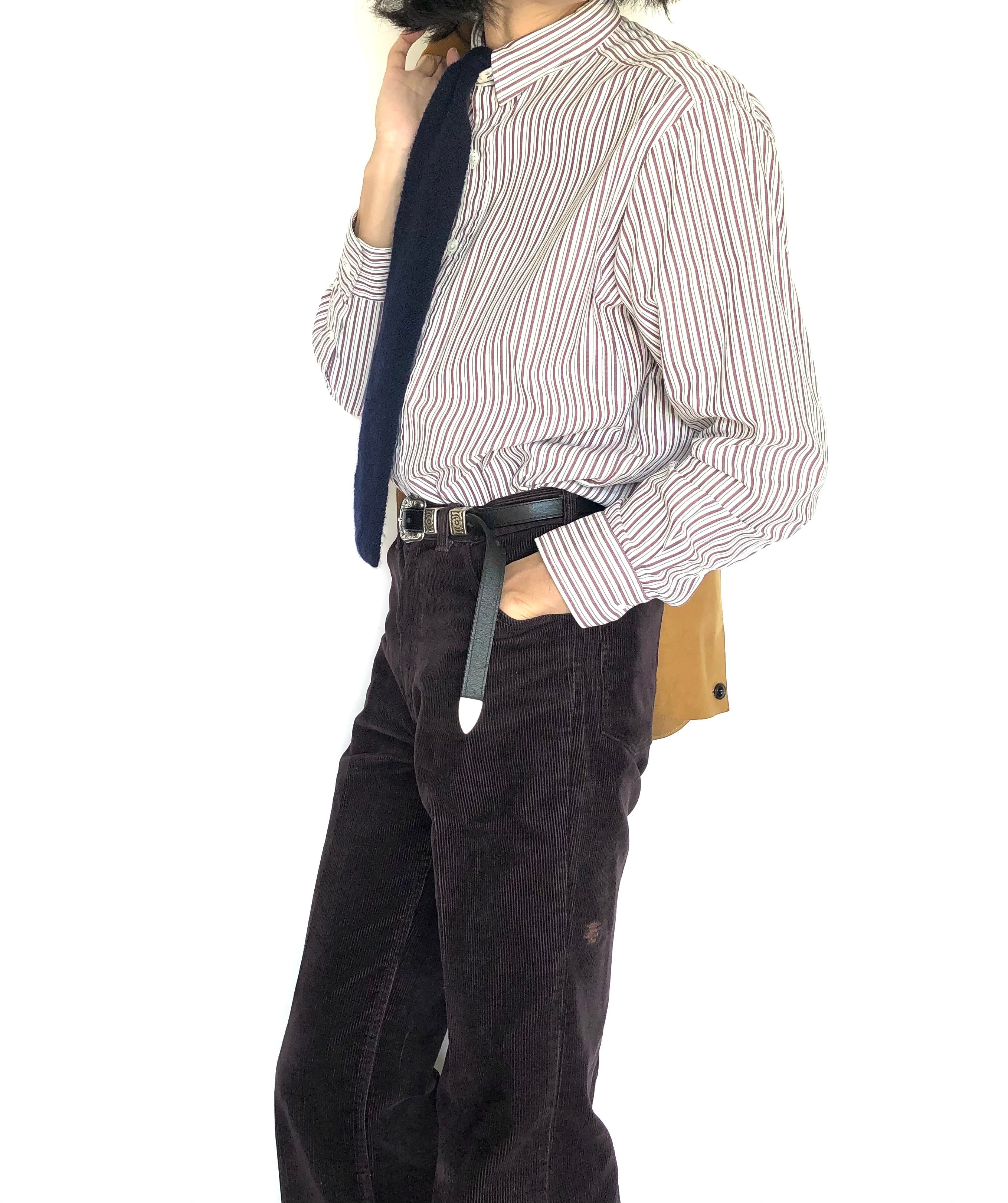 ▲Product detail コーデュロイ素材、2タックスラックス。 ほどよくテーパードも効いているディテールです。 クリースを付けてキレイ目に着用やクリース付けずに、ロールアップしてラフに履いたりと幅広いスタイルでご利用いただけます。 また、ウエストをベルトでギュッと絞るのもありかと。 ロールアップしてブーツとかも良いですね。 素材 : 85%COTTON 15%POLYESTER Color : brown ※裾口、元々ダブル仕様。 ※写真に写っている左腰部分の白ステッチは外してあります。 ▲Size Size : W34/L30 ウエスト : 85.5cm ワタリ : 36.0cm 股下 : 75.5cm 総丈 : 102.5cm 裾幅 : 22.0cm ダブル幅 : 3.5cm ▲Condition Used.(コンディション等ご理解いただけますよう、お願いいたします。 ▲Caution ※平置き採寸になりますので若干のずれが生じる場合がございます。 ※USED品の為、返品・交換・クレーム等は一切お受けできません。 ※色合いとサイズには若干の個体差がございますので、ご了承くださいませ。