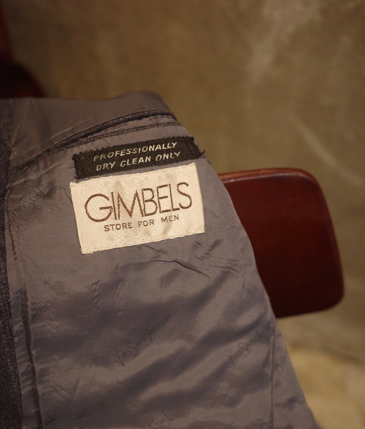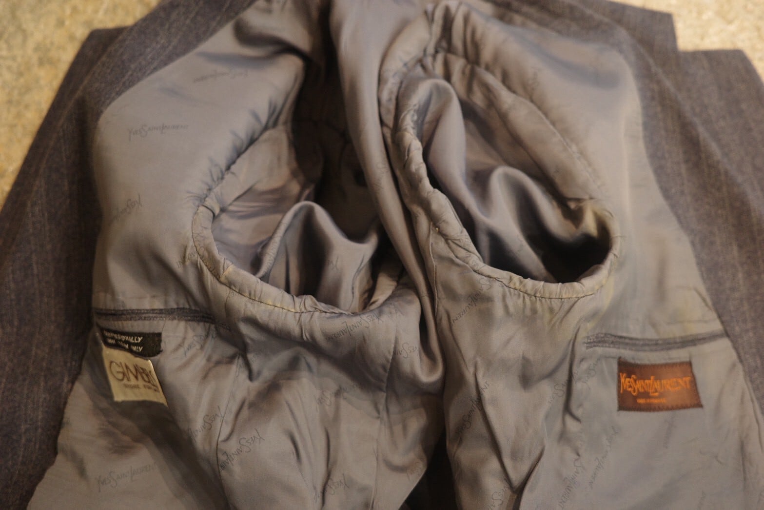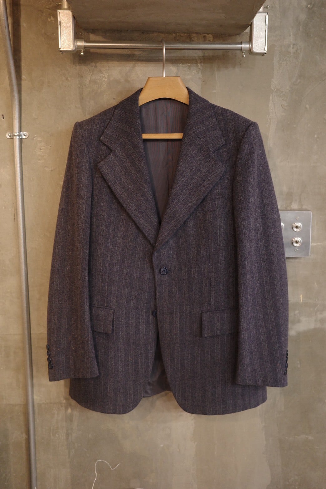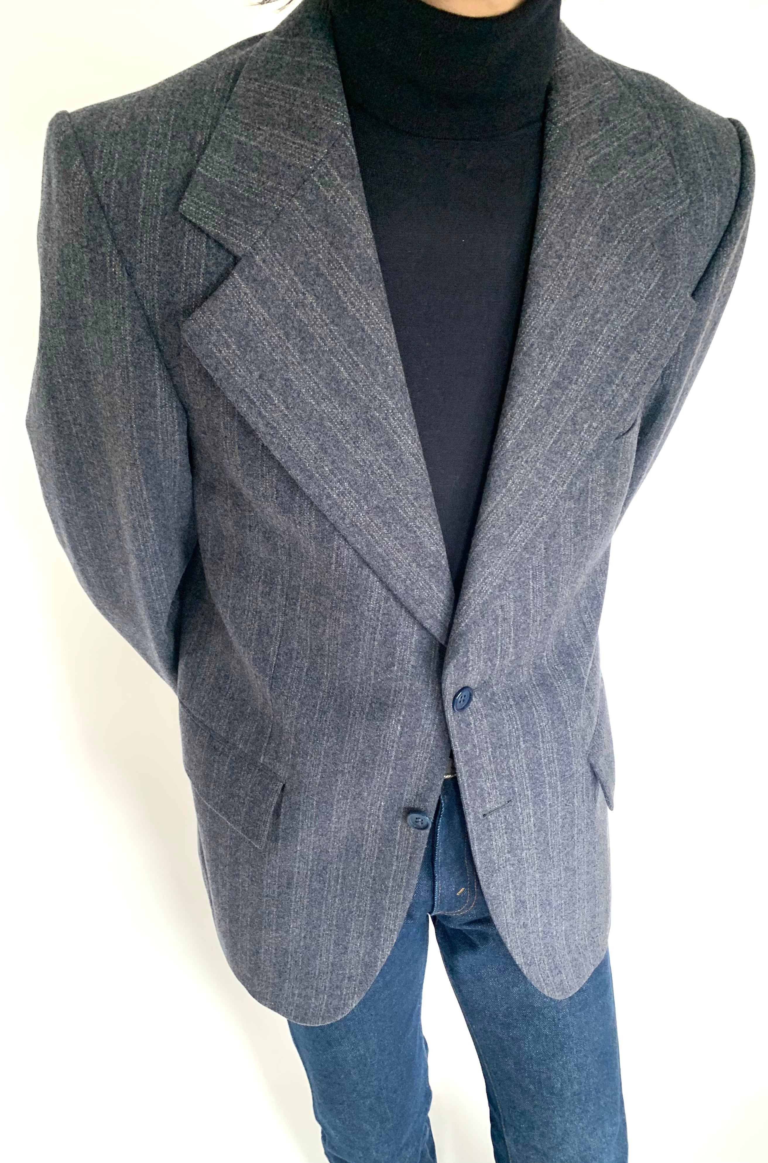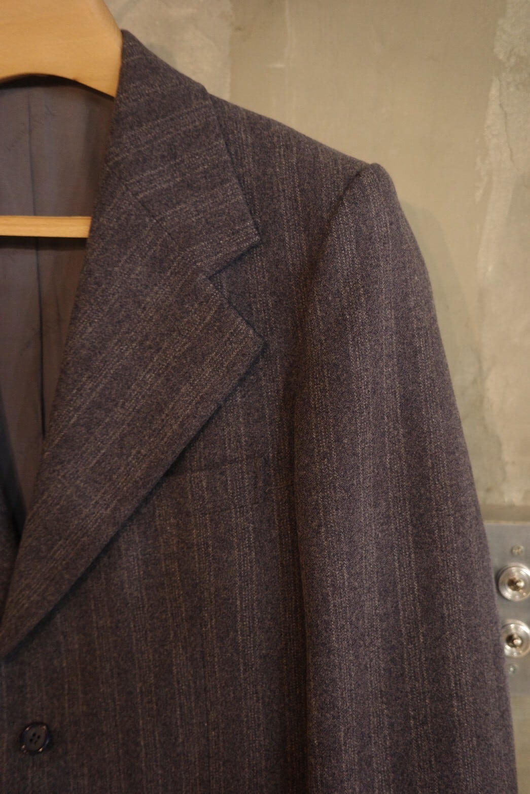 太いラペル幅、ゴージ位置の低さ、構築的な肩周りなど70年代、YVES SAINTLAURENTを堪能出来る一着です。