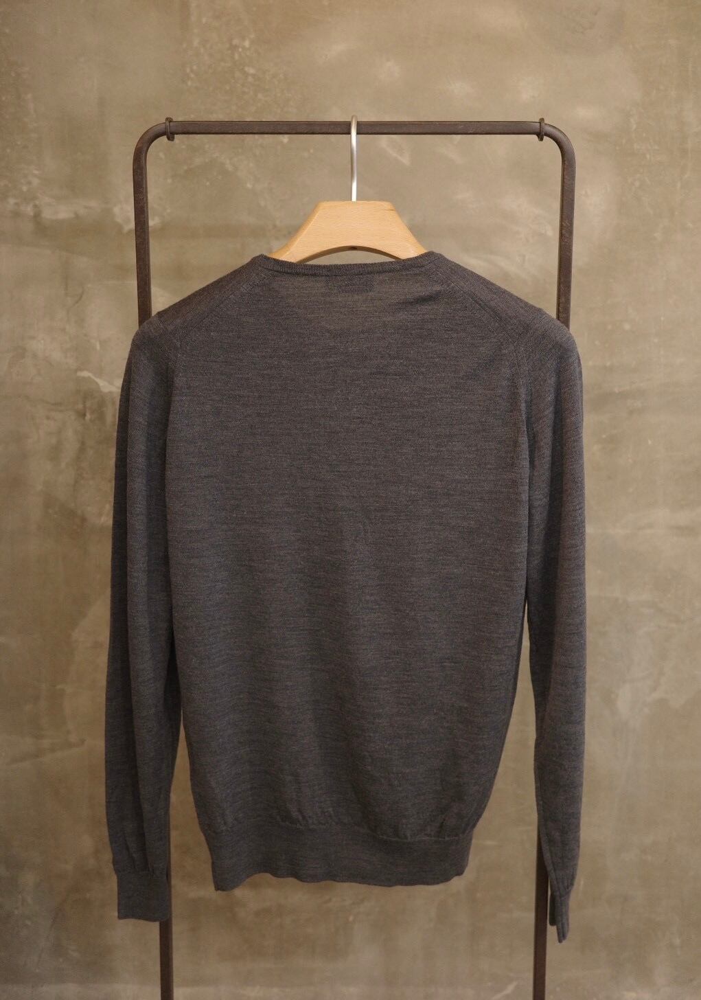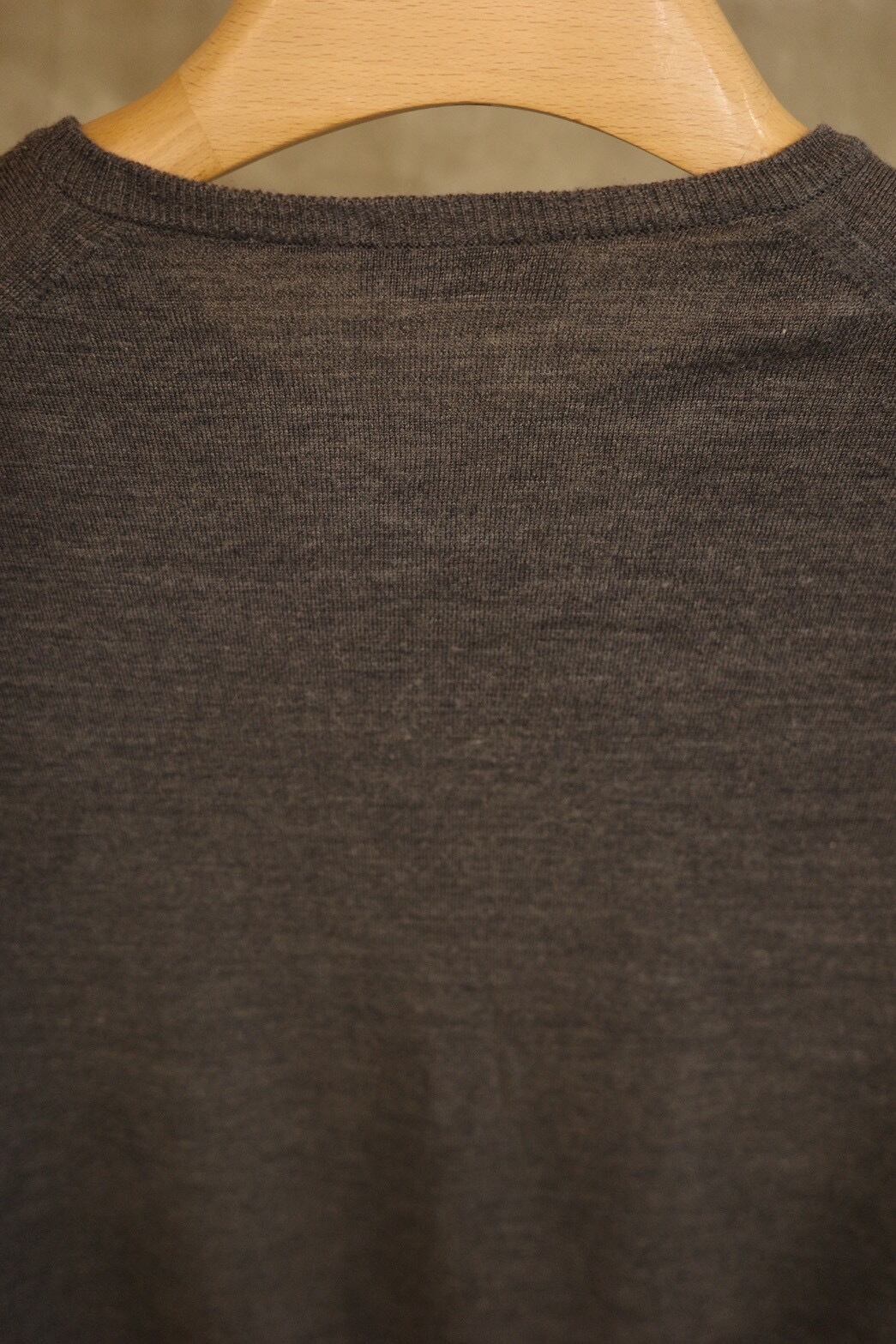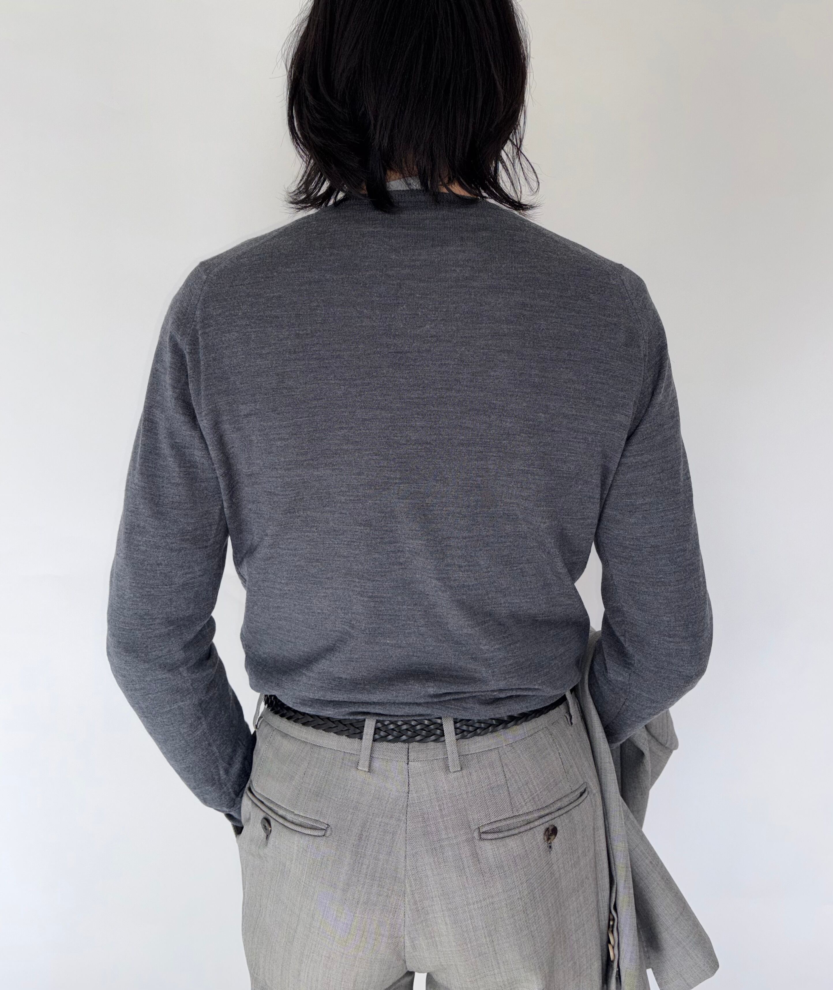 上質なエクストラファインメリノウールを使用した30ゲージのハイゲージニットで、非常に滑らかで軽い着心地が特徴です。チクチク感が少なく、素肌に着用できるレベルの上質さ。